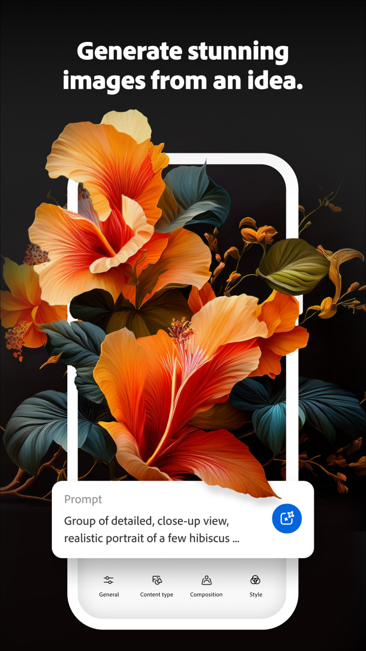 This software, developed by one of the industry leaders, will become a perfect assistant for anyone looking for some help in creating quality media content. It uses GPT image generation model by OpenAI and several other advanced models to turn text descriptions in professional-looking pictures and even videos, that you can use in any projects. No matter if you're looking for certain objects to use for your original content for social media, or require a fresh look for your marketing visuals, Firefly will make the job as easy as one-two-three. Just enter the text description of the image you want to generate, choose the content type, and let the software do its magic. Results can be saved to your smartphone's gallery in high quality.