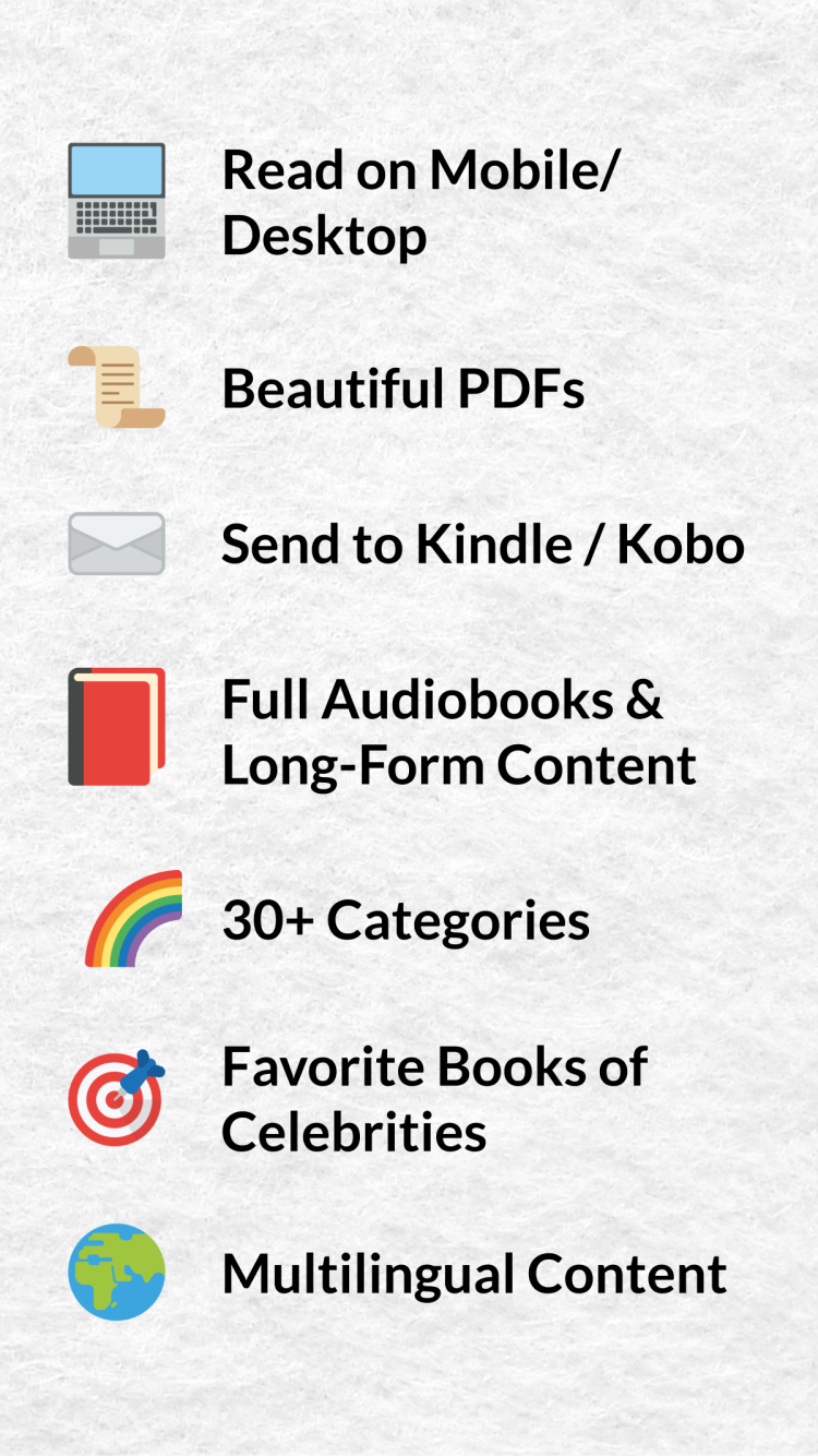 Importantly, StoryShots is also suitable for those who perceive visual information better. In addition to book summaries, the program offers you infographics, as well as various animated and video content to make learning easier and more convenient. And a nice addition will be the ability to export content in PDF format and integrate with Kindle and Kobo. This will help you enjoy reading anytime and anywhere, not only on your smartphone, but also on a PC or e-readers.