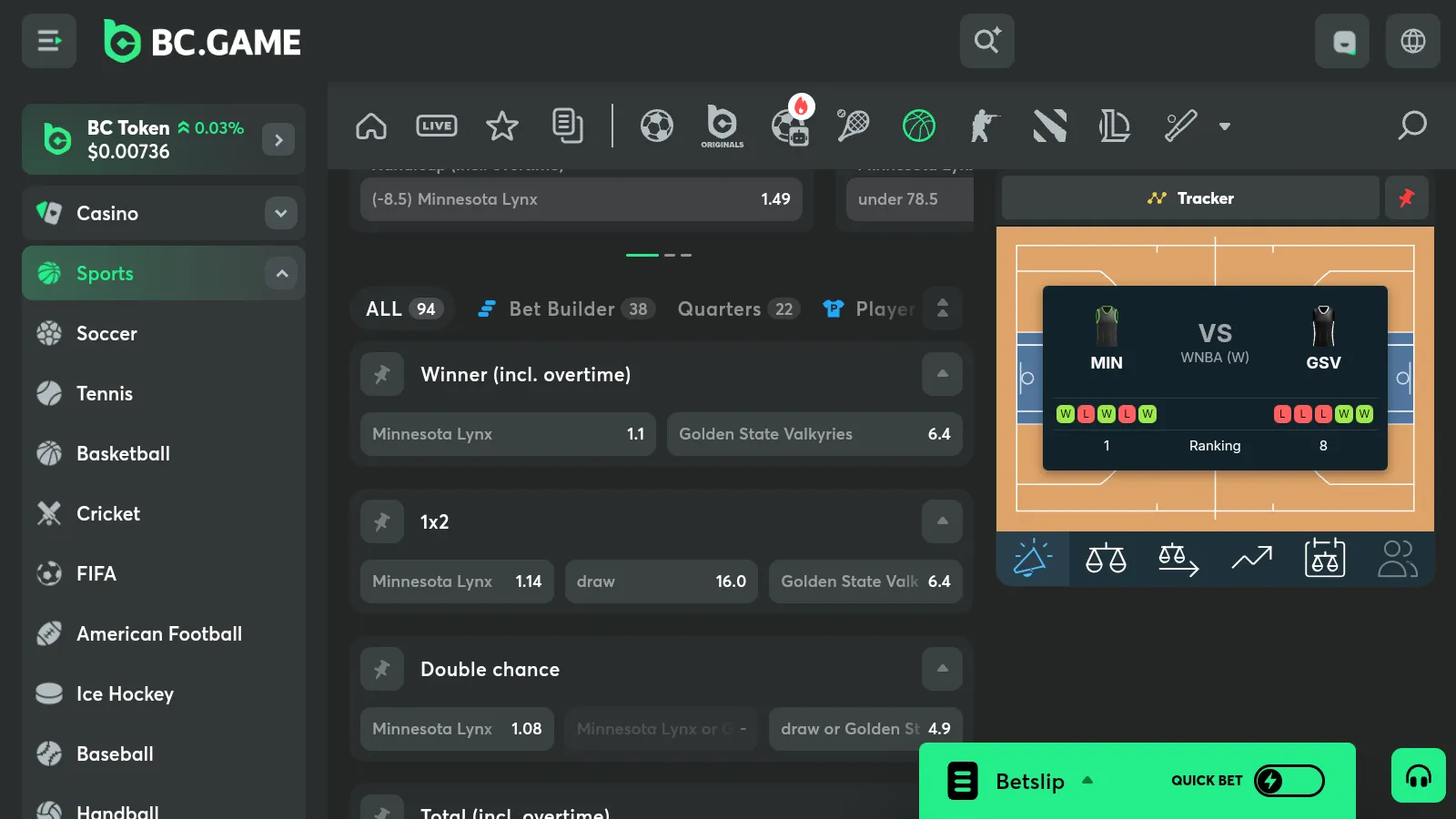BC Game provides extensive coverage of both international and local sporting events. You can place bets on: