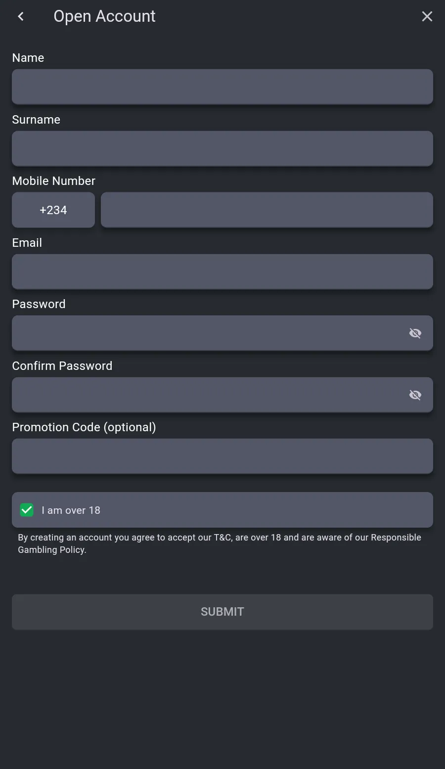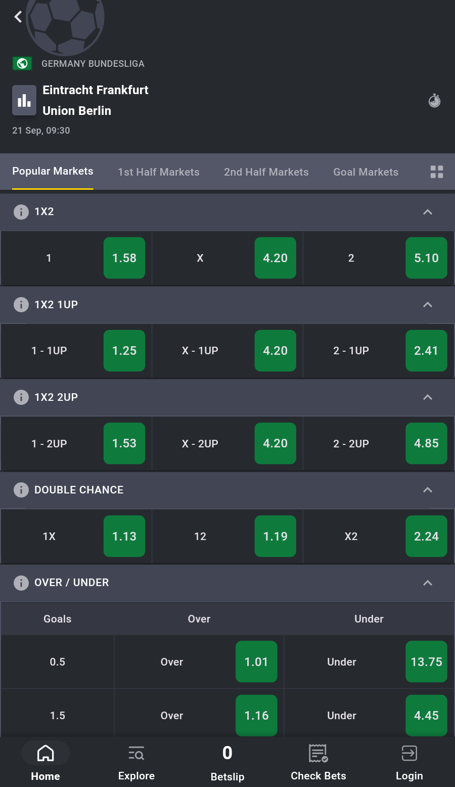 New users may receive a 100% first deposit match for the sportsbook, though availability varies. To claim, register in the app, ensure you make at least the minimum required deposit, and stake the full amount in a single or multiple bets on any sports market with odds 3.00 or greater.