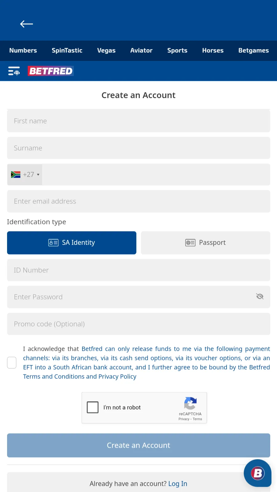 Account creation is a mandatory step for all the Betfred clients: no matter if you're using a web version or an official mobile app. The process is simple: just press the registration button on the homepage and enter the following information about yourself: