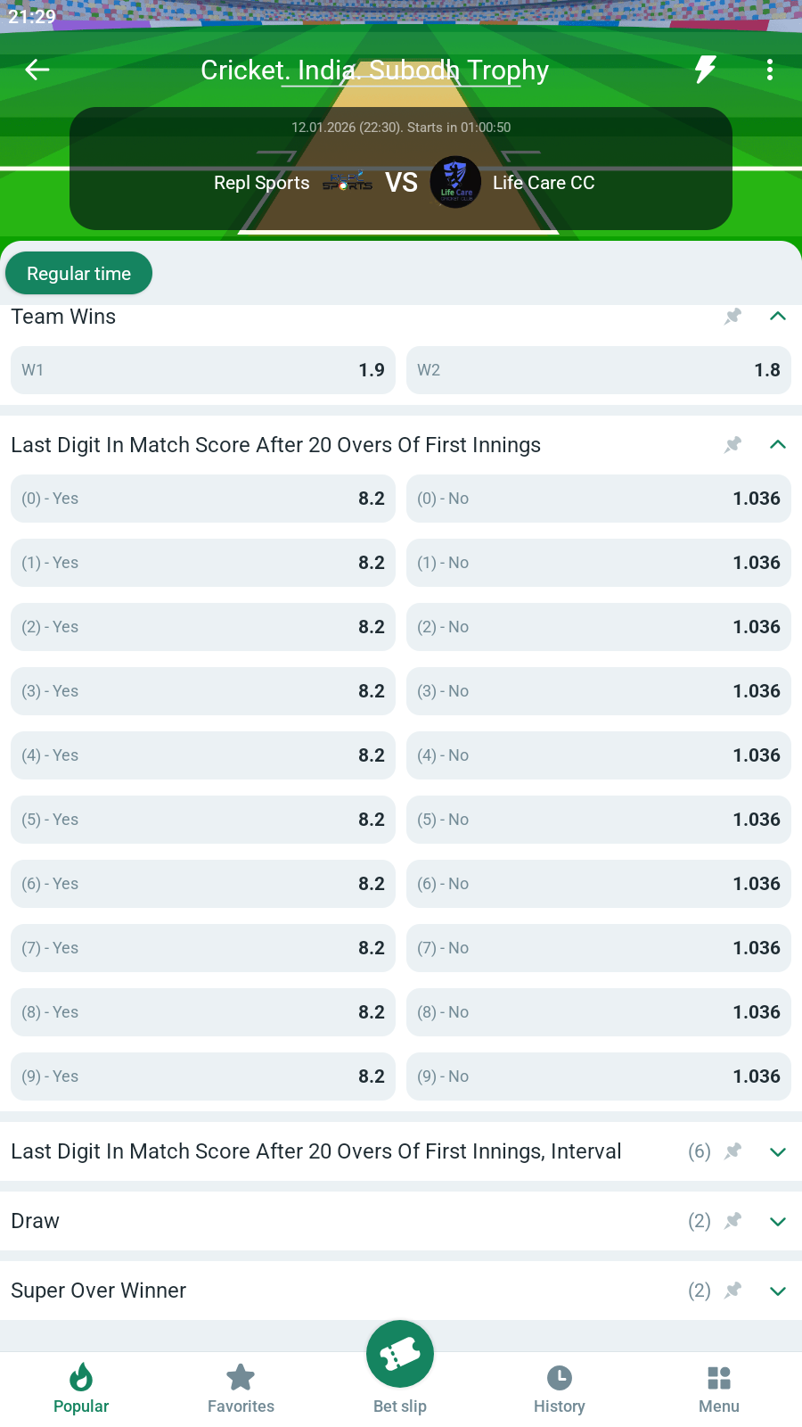 Pre-match - place bets in the sports and esports sections before the selected events begin.