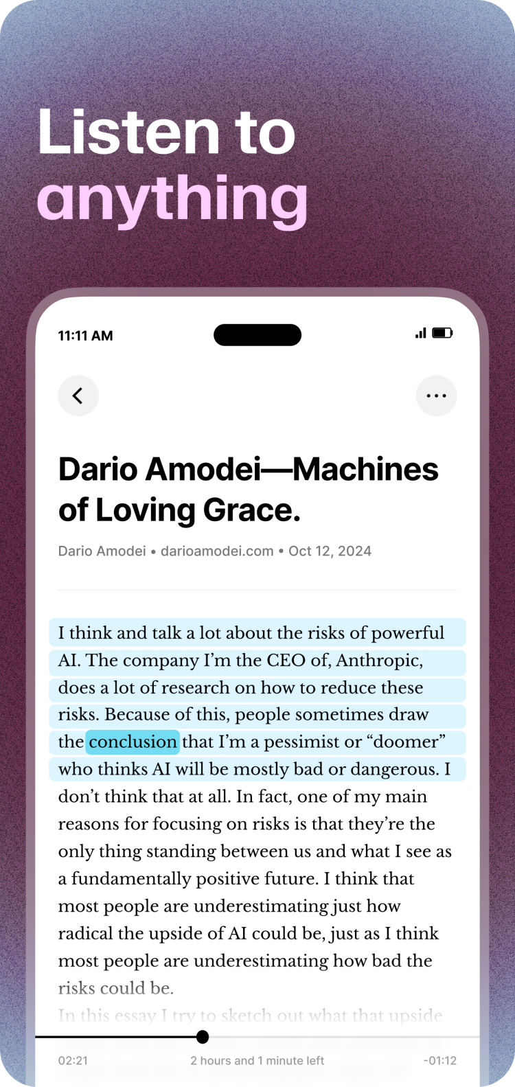 ElevenReader is a perfect mobile app for those who love to read, but don't have enough time. Uses artificial intelligence to read virtually any content aloud, providing the most realistic sound possible.