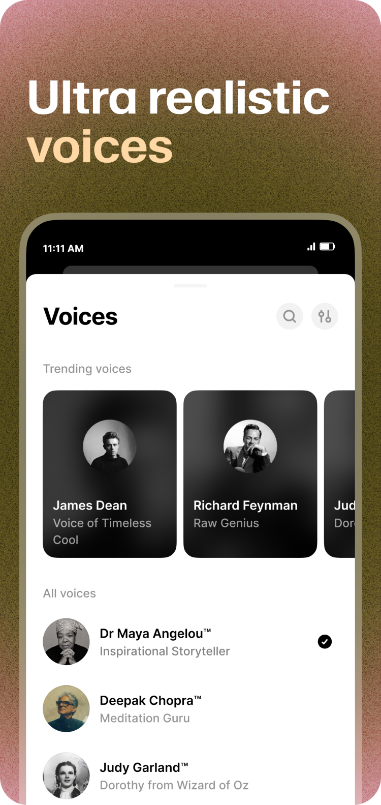 ElevenReader is an AI driven text to speech app, that helps you enjoy listening to your favorite books or nearly any other text, while working, studying, exercising, etc. The application uses a powerful context-sensitive text-to-speech model to ensure the most natural sound when voicing any texts. The user can select literature from the built-in catalog, or import any articles, PDF documents, ePub files and other text content into the program, and the program will voice it in a matter of seconds. The latest version of ElevenReader features multiple voices, that you may have heard on TV or in movies.