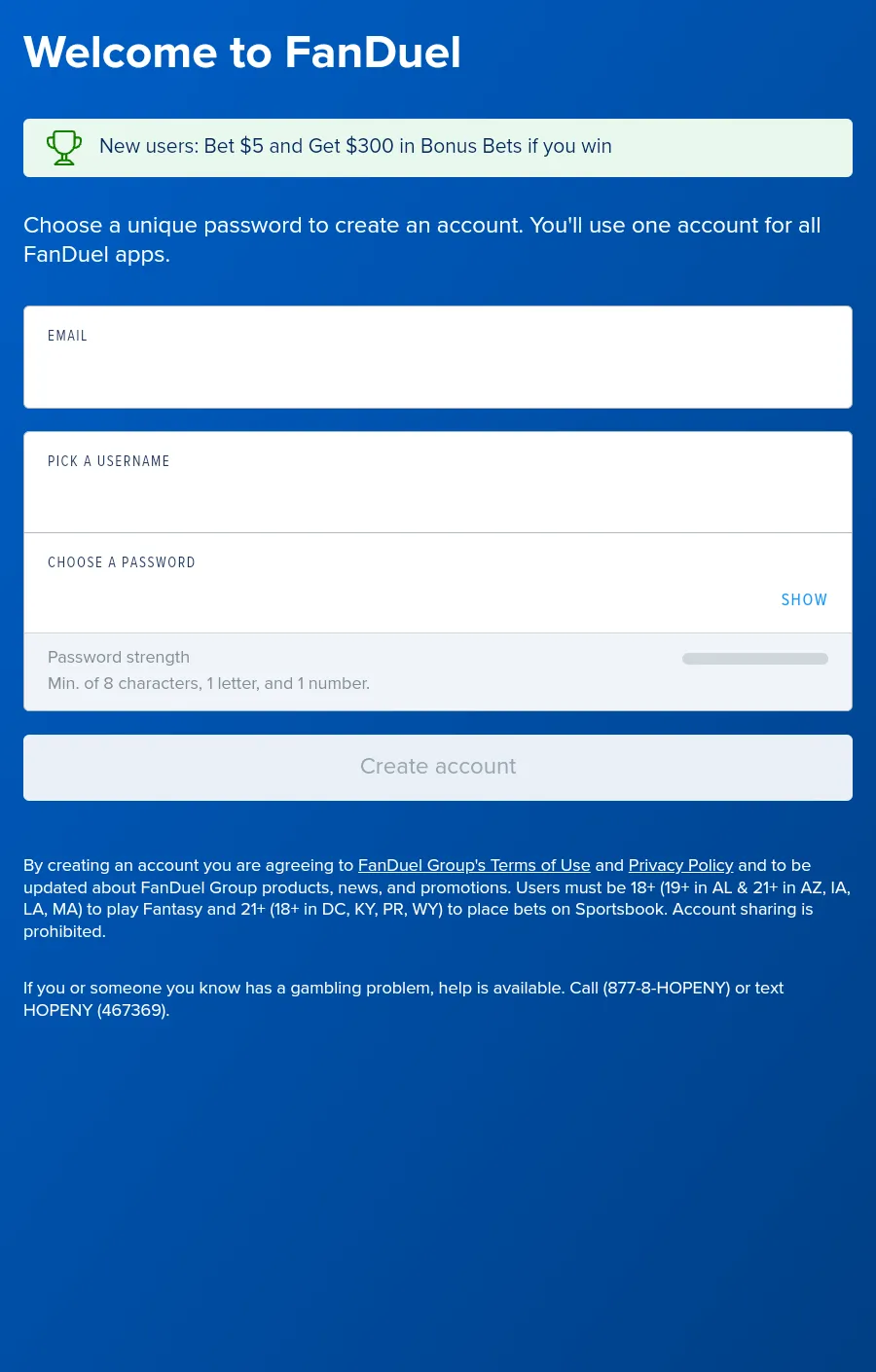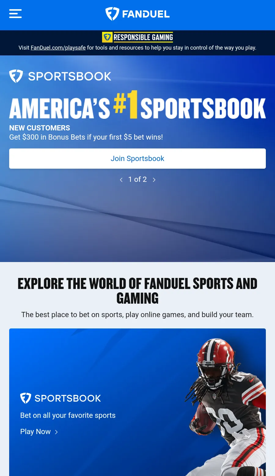 After installation, tap the FanDuel icon on your home screen or app drawer. Follow the in-app prompts to register or log in and start exploring the app’s features. Note, that the platform is available only in select U.S. states, Ontario (Canada), Puerto Rico and may have state-specific versions, but the app is universal for bettors from all the supported regions.