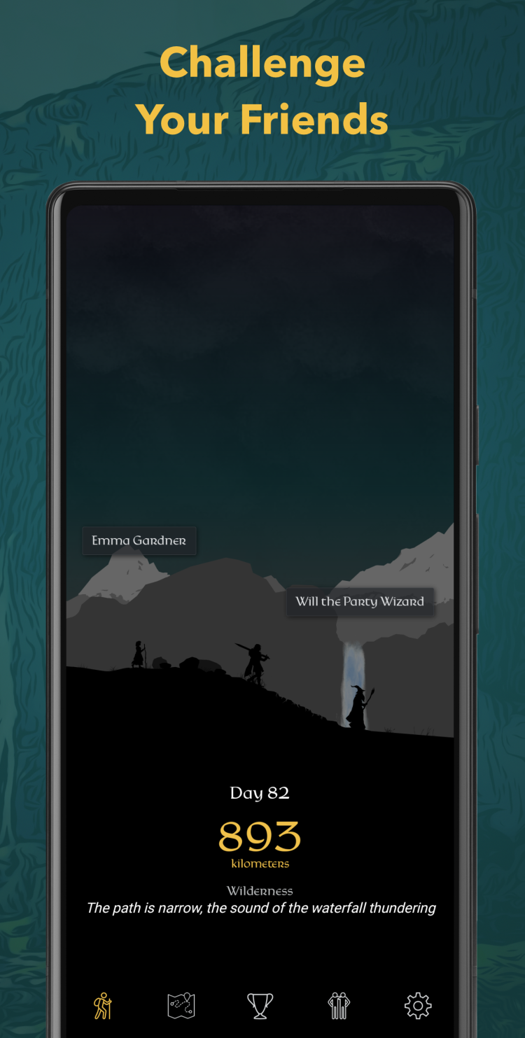 Fantasy Hike will track the distance you've walked and display your progress on a fantasy map. It will estimate the time it will take you to get to Mount Fire at your current pace. But more importantly, you can invite your friends and compete with them, trying to reach the goal before anyone else. But even if you haven't invited anyone yet, be prepared for Mr. Underhill to take his mission seriously and immediately set off with enviable tenacity. This way, the program motivates you to walk more often and longer, which will not only help improve your health, but to follow in the footsteps of your favorite heroes.