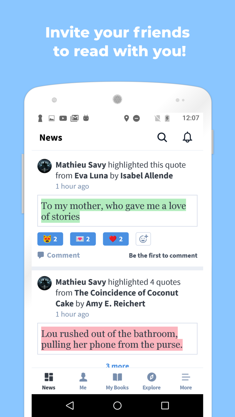 • opportunity to invite friends to read together, or to create virtual book clubs