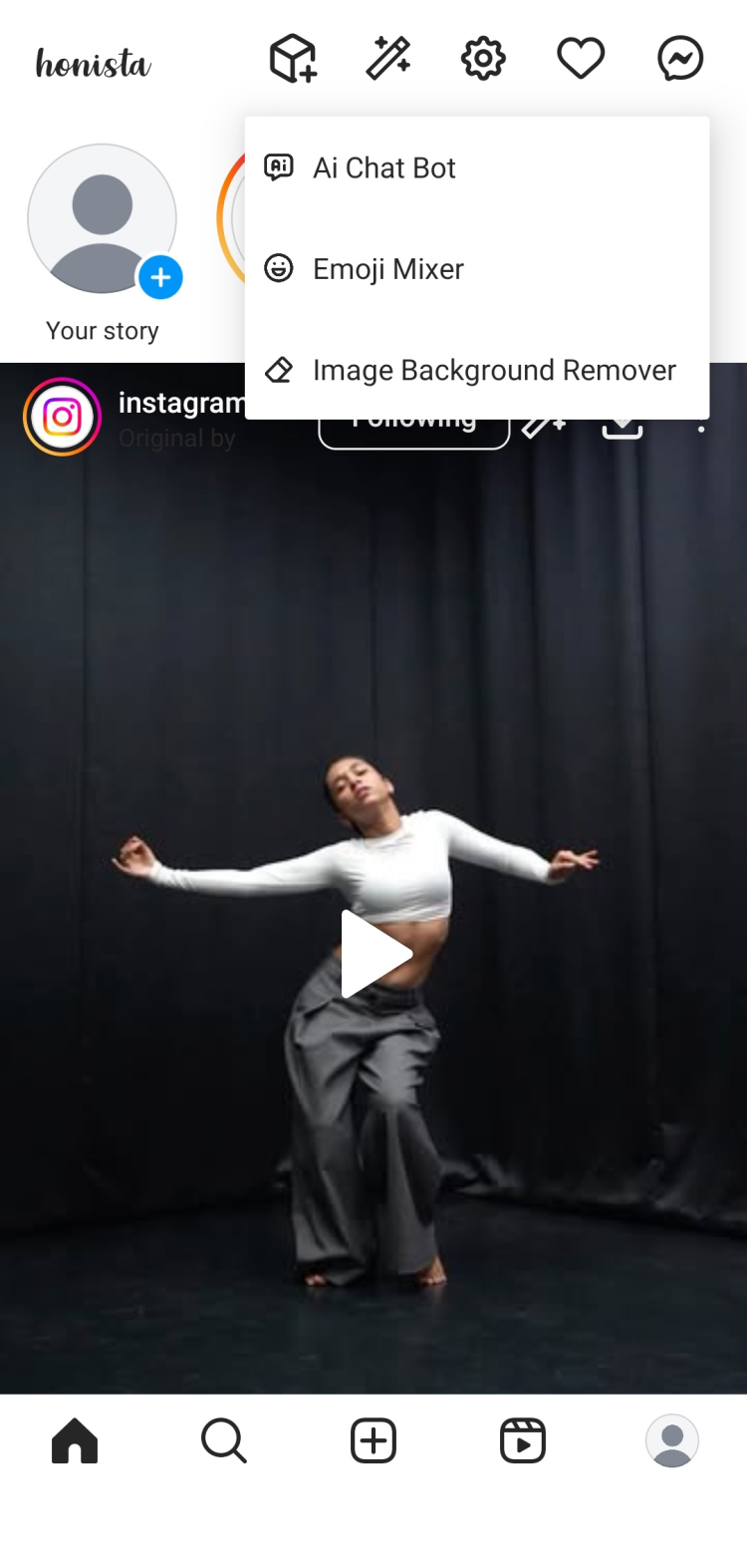 Note: Honista is a modified Instagram client — not available on Google Play. This is a third-party mod with features Instagram doesn't offer officially.
