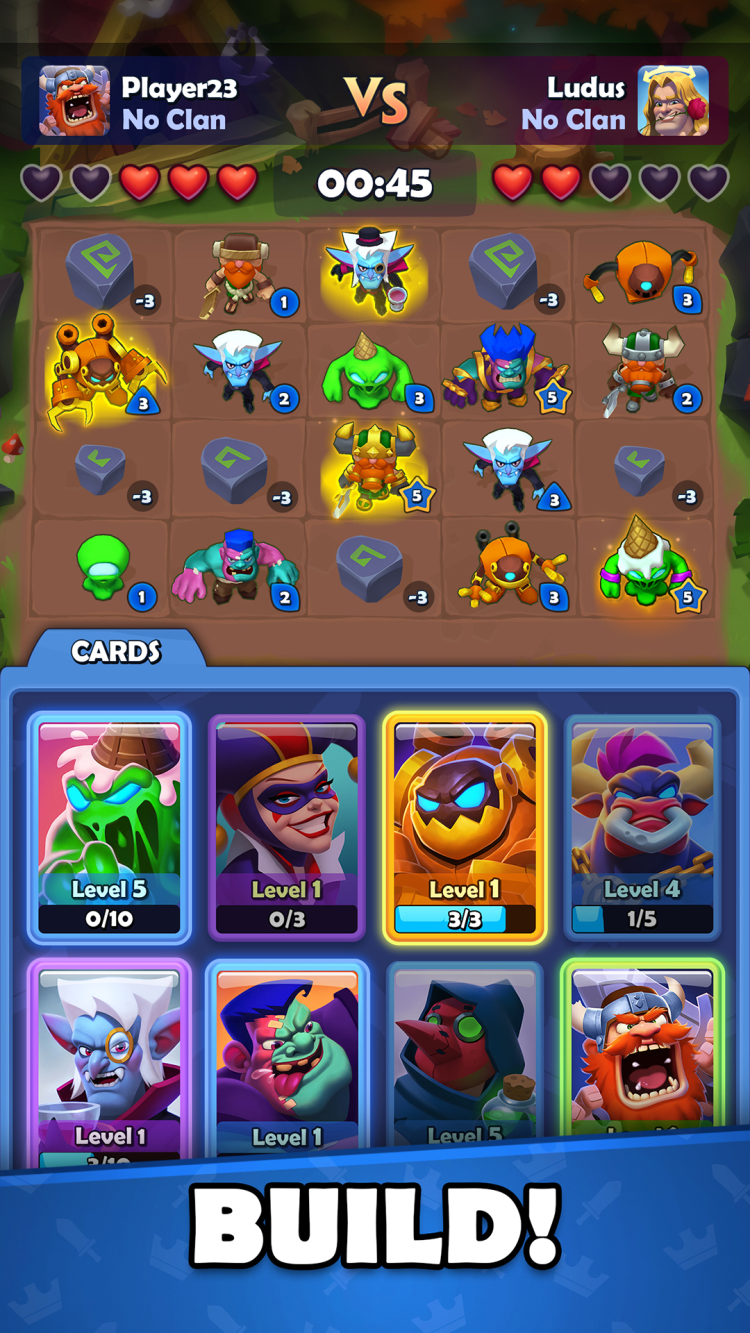 Looking for something to play on your phone, but tired of endless clickers and games that almost entirely consist of watching ads? Then download LUDUS for Android. This is an exciting strategy game in which you will experience dynamic battles that last only a few minutes. During the fight, you and your opponent will summon various heroes to the playing field using a limited number of summoning cards. All heroes have their own unique skills, so by unlocking new characters, you make the gameplay even more varied and fun. But what makes the LUDUS game unique is the merge mechanic. In other words, you need to merge identical characters of the same level to upgrade them. Improved heroes of the maximum level receive an additional advantage: a unique skill that can change the course of the match. The first player to inflict 5 defeats on the opponent wins the match.