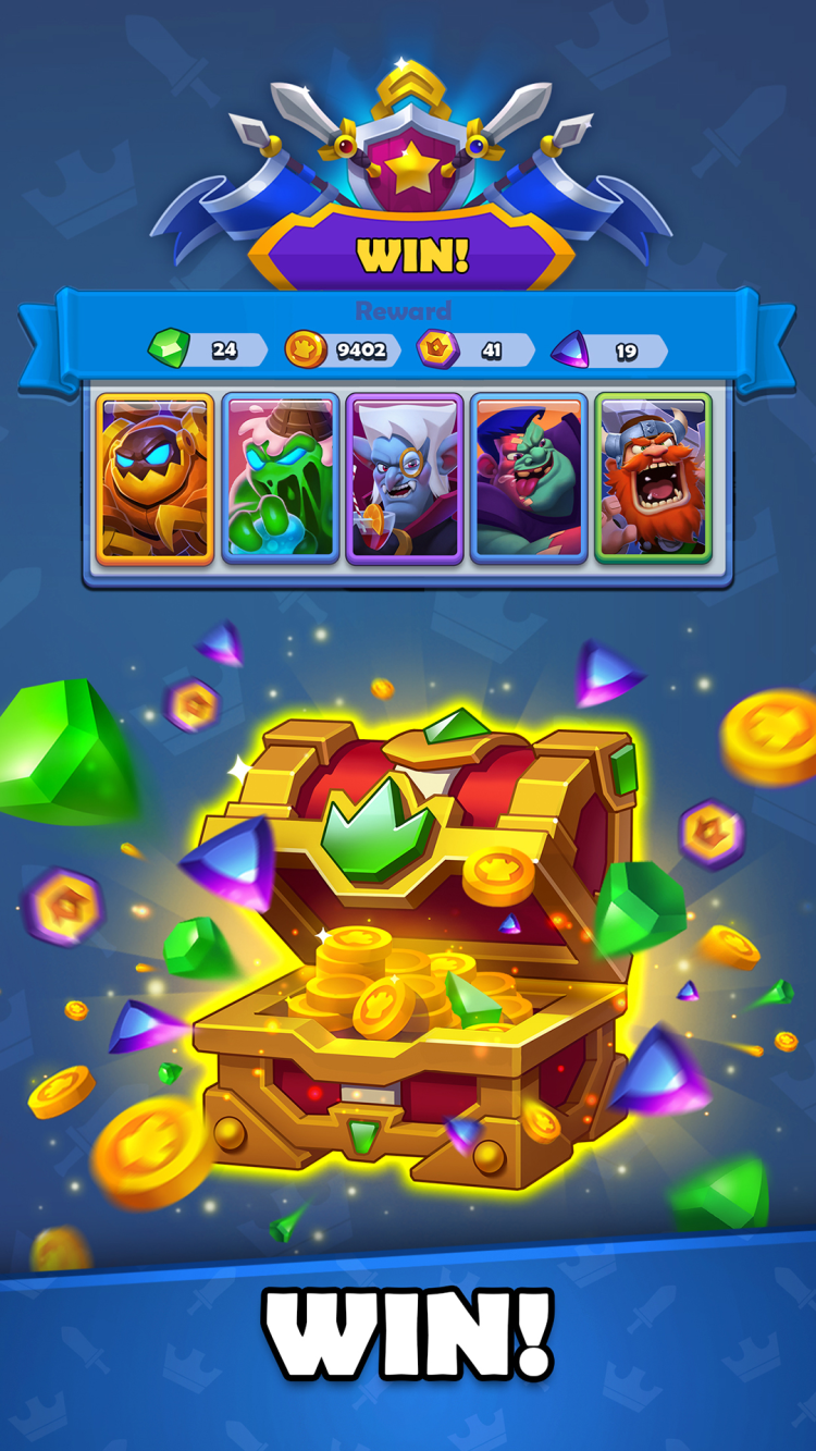 By winning matches and opening chests with rewards, you will earn cards with new heroes. With their help, you can not only get additional fighters with unique skills, but also improve the characteristics of your existing heroes.
