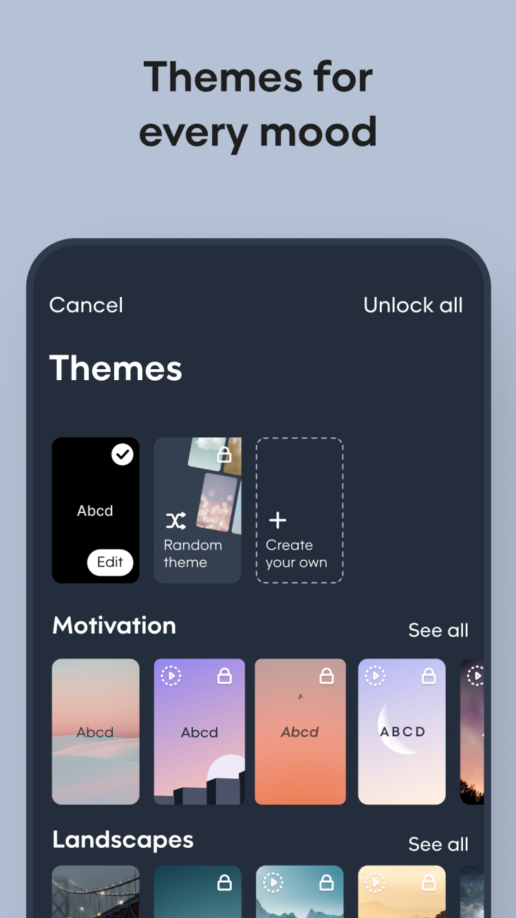 Are you feeling stuck and unmotivated? Then try Motivation - Daily quotes app. It will become your personal, pocket-sized source of inspiration, designed to keep you focused on your goals and just stay positive, no matter what is happening around you. For that, the latest version of the Motivation app contains quotes on several topics, including: