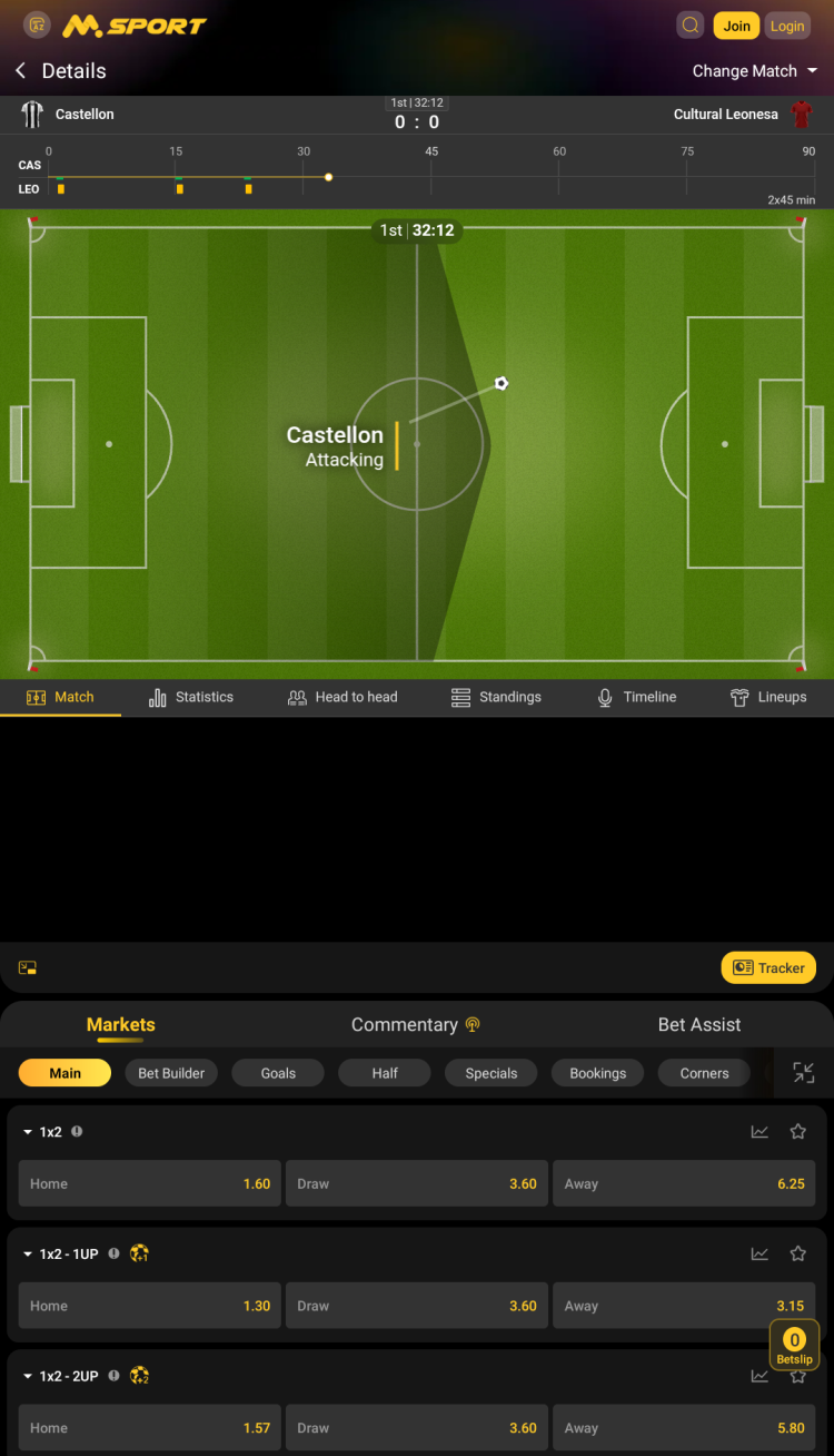 • Bet Assist - on each match page, users can access detailed event information to help them place informed bets. This includes match statistics, lineups, and a live table.