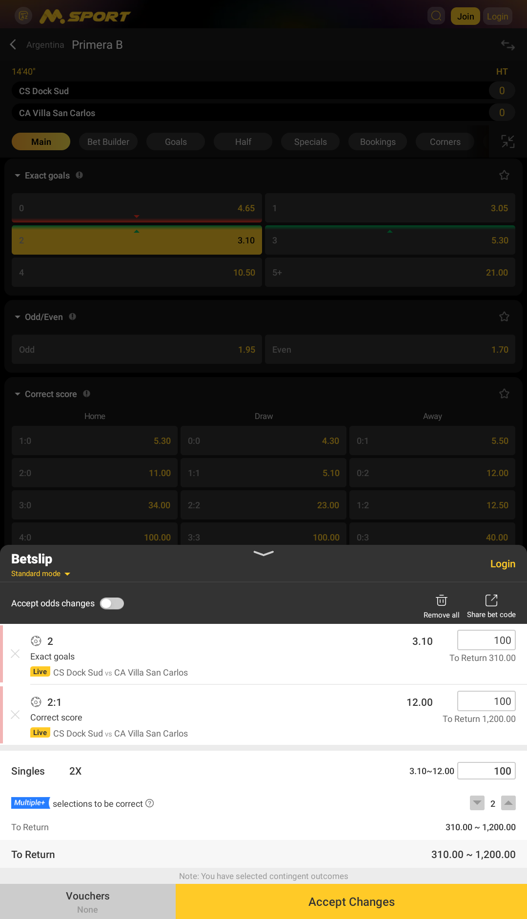 • Bet Builder - this function allows to combine different markets of the same match in a single bet. Cannot combine with other bets, and may not be available for all events and markets.
