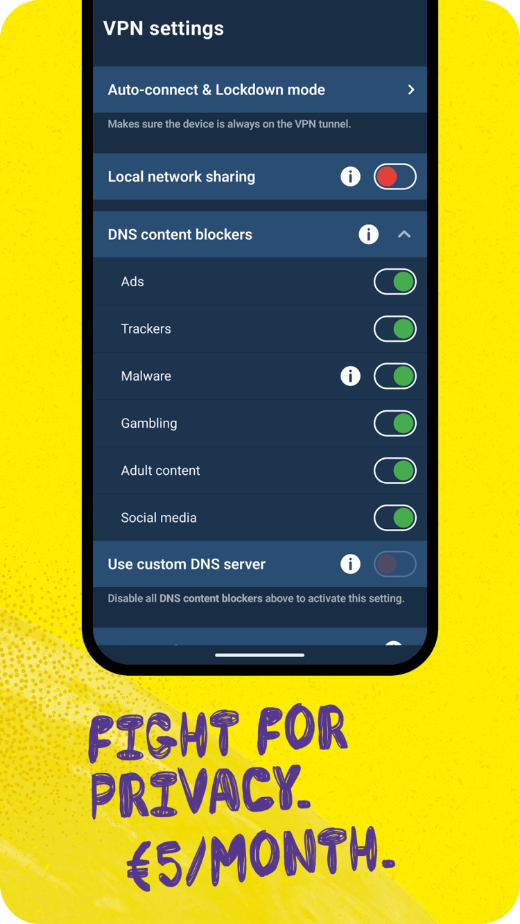 Nowadays, protecting your privacy online is becoming increasingly important. Even a careless connection to a public WiFi hotspot can result in a serious leak of personal data. Therefore, it is recommended to use reliable VPN services that are designed specifically to provide unrivaled protection of user data on the Internet. One such service is Mullvad VPN. This application offers a selection of high-speed, protected servers in different parts of the world. Just choose the preferred one and the app will route all your traffic through that server, using an encrypted tunnel to make your data inaccessible for third parties, and even your ISP. This ensures, that all your data remains only yours, even if you're using unsecured WiFi networks. But what's more important, you can use any of the provided virtual locations to access websites and resources, that are blocked in your region. Enjoy a safe, censorship-free internet accessible to everyone.