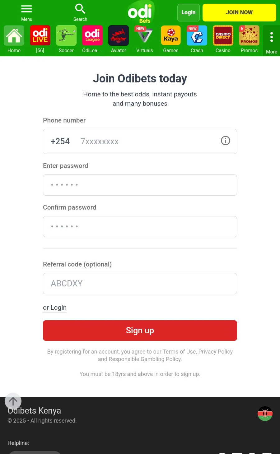 Registration and login are essential for accessing Odibets’ full features, including betting and account management. Without creating an account, it is impossible to place a bet and, what's more important, to withdraw winnings.
