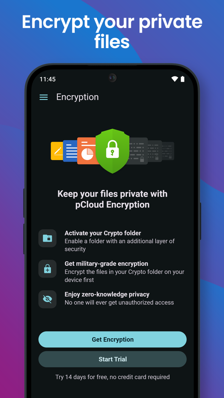 Running out of space on your smartphone? Not a problem, because there are already many reliable cloud storage services and pCloud is one of them. With this application, you can get 10 GB of personal storage for free, or pay for additional space. Using pCloud, you can safely store your photos, music, videos, documents, and any other data and access it effortlessly from any of your mobile and desktop devices, without compromising on speed or privacy. Speaking of, all users' data is stored on secure servers with client-side encryption, thanks to pCloud Crypto, which ensures, that your data is safe from interception and remains inaccessible for third-parties. And when sharing heavy files, the program offers advanced security measures: setting a password for access or expiration date.