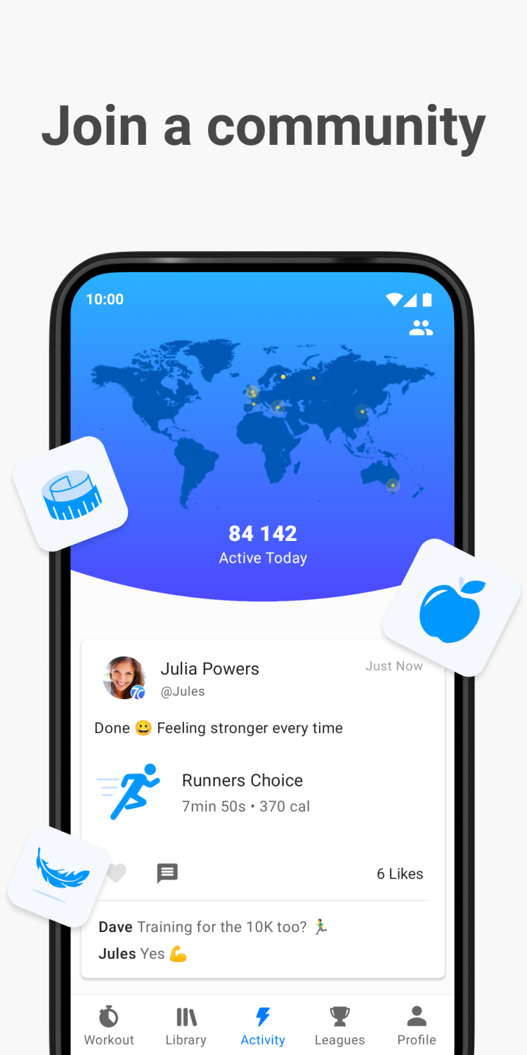 • Collaborative workout mode;